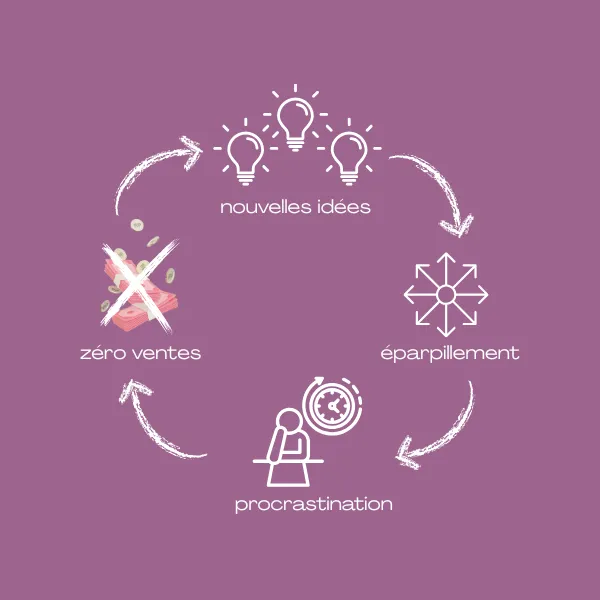 Et aujourd’hui, tu te retrouves avec des débuts de projets, des bouts de plans, mais rien de vraiment clair ou structuré pour avancer et ton business stagne !